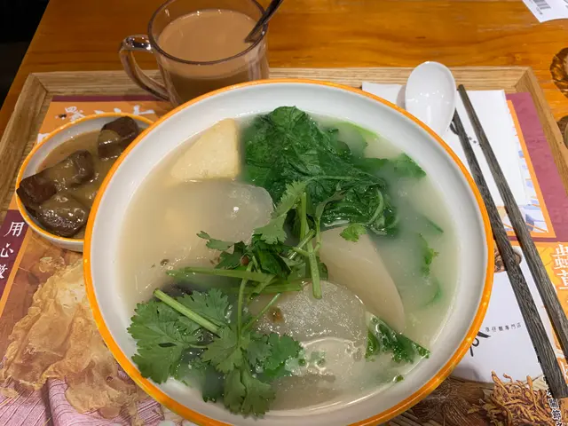 午飯時段灣仔區週圍都咁多人,揾個好位,唔好太多人,又要好味,真係幾難,行過見呢間有午市飯餐,又見門口無人等位,可以直入,非常好。點餐紙上有幾款飯餐揀,見隔離幾枱都係食同款飯餐,所以選了柱候牛筋腩飯(少飯/多汁),套餐有湯和菜,牛筋腩不算出色,碗湯就幾好飲,係生菜皮旦湯,跟餐包熱飲,不需收加一服務費,總數$63~,以這樣寬闊的環境都算幾抵食👍。但係最搞笑係,食完成餐飯出去埋單先至發現呢間「四爺」的招牌菜係「車仔麵」🤣,唯有下次再試。