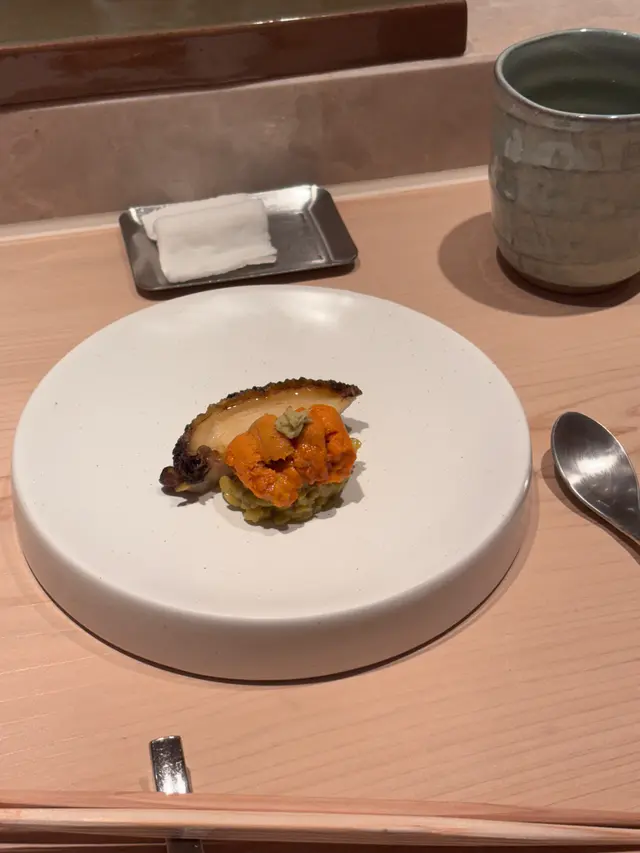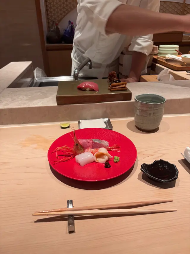 📍位置在尖沙咀金马伦道8号The Otto酒店1楼,位置还算好找。店内是日式极简原木风,一走进去,安静又舒适,让人瞬间放松下来,很有吃omakase的氛围。套餐里前菜的「小肌鱼配蛋黄紫菜」一上桌就惊艳到我了,小肌鱼色泽鲜亮,下面垫着的是混合了蛋黄酱的山药,代替了传统寿司饭,搭配上芥末籽,一口下去,酸酸甜甜,超级开胃 !「日本圣子贝」也很不错,刺身口感筋道,特制青瓜酱增加了浓稠感,又添了一丝清爽。寿司环节更是精彩,每一贯都能感受到师傅的用心。「带子」肉厚嫩滑,入口即化;「深海池鱼」厚切吃起来超满足,胶状口感很特别;「马粪海胆」据说是当天空运来的,师傅给挖了满满一大勺,鲜甜可口,幸福感直接拉满!最后的甜品「柠檬奶冻慕丝」为这顿饭完美收尾,上层丝滑的柠檬慕斯,下层弹嫩奶冻,再挤上柠檬汁,酸酸甜甜的,超解腻 。全程师傅都很热情,会细心介绍每一道食材的来源和特色,边吃边涨知识。如果来香港想吃正宗又有创意的日料,寿司芳真的强烈推荐!…查看更多