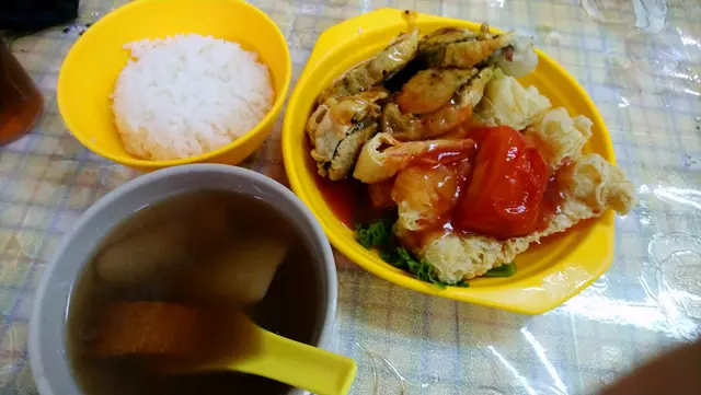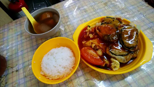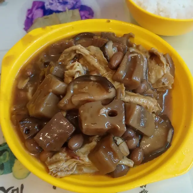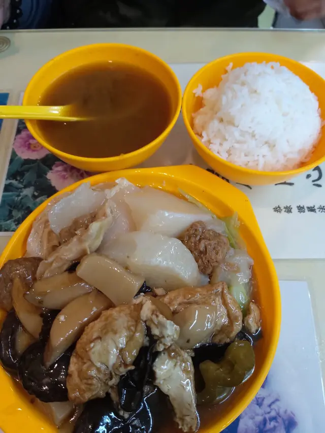骨子裏完完全全係食肉獸的我很難判斷齋菜的味道,不太能作準。五榖黃瓜湯,勁多湯渣,其實淨水可以的了。甜美湯汁充滿瓜味蘿蔔味蜜棗味,如果溫度再燙一點就更好飲一點。菜甫炒蛋,色香味俱全使我不能自拔,真係要撈兩三碗飯先夠喉!青豆粟米紅蘿蔔添上甜味,跟菜甫咸味擦出火花,最後仲有爽嫩清甜芥蘭墊底呢。菜甫蛋勁足料真係好好味,必定要狂撈飯!絕對能夠送兩大碗飯都綽綽有餘。羅漢齋湯麵,真係好齋!估唔到係白色四川拉麵,幸好嚥韌不太腍,頭頭有點淡加辣椒醬提味舒服許多。西蘭花金菇肥牛,西蘭花有點腍不爽脆,肥牛像真度極高,以假亂真!味道質感近乎完美。白飯,有飯焦而且微溫不熱,立即要求嬸嬸換過碗新鮮熱辣,天淵之別。乾燒伊麵,足料好好味!最衰廚師忘記走芽菜,我又要續條挑走,挑乾淨後碟伊麵凍晒喇,食味急降!素肉雜菌伊麵,原本三分鐘可以食完,因為要花時間慢慢挑走所有芽菜,用上十幾分鐘消滅,阻住還枱給其他食客享用晚餐呢!。金瓜湯,到底金瓜是什麼?南瓜湯?味道甜甜的,我不喜歡甜湯的。麒麟卷,原來真身係榨菜肉絲腐皮,煎得十分香口可愛。榨菜咸咸脆卜卜搭著嚥韌素肉,水潤的餡配乾爽的皮,整體還可以。發財好市,真的有蠔豉味喎!大量髮菜索味索汁,蠔豉外皮超級嚥韌,仿如有脆漿的炸蠔,美輪美奐。仲有生菜墊底,用生菜捲住髪菜蠔豉更加滋味。羅漢齋伊麵,超足料多到鋪滿碟面,所有伊麵都被淹沒!雲耳、鮑魚菇、蘑菇、雞髀菇、豆卜、珍珠筍、菜芯、冬菇、紅蘿蔔,共冶一爐!終於食到香口嚥韌帶汁靚伊麵,完整無缺長啜長有!夾著不同配料品嚐格外醒神。…查看更多