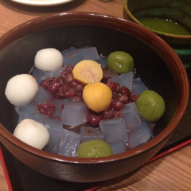 呢間等左都幾耐, lunchtime好多人排! 我地淨係嗌左甜品, 我嗌左白玉寒天甜點, 都幾好食,主要係類似大菜糕好爽既透明粒粒,綠白兩款但味道冇分別既軟熟小丸子,面頭既栗子好甜好粉,底既汁係好甜既紅豆湯,唔夠甜既話仲可以淋附送既黑糖。呢個甜品唔會太甜, 口感十足, 有咬感同時又爽爽地,另外有熱既綠茶,好苦澀同濃既,waitress話係日本人食完甜品會想飲綠茶沖淡下甜味,可飲可唔飲。有咁既服務已經好收貨啦~查看更多