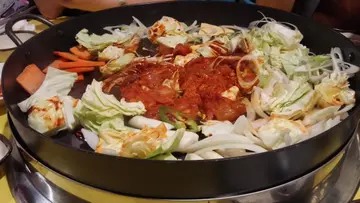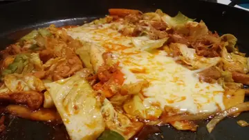 點解又執左嫁~~~呢間韓國鐵板雞我好鐘意食呢~煮既時候會有好大隻鑊, 然後店員會用火槍大燒之後就食得, 我一路都好鐘意呢個環節嫁!沙律菜清新之餘又加左D牛肉, 所以唔會好寡, 味道好突出, 越食越想食~韓式鐵板雞, 成個過程由生煮到熟, 都會由店員負責幫手, 係用左韓式豆板醬同雞肉, 椰菜同年糕炒成, 味道甜甜地又辣辣地, 雞肉同椰菜又稔, 超好食! 而且份量係超級多!2個人食會飽到行唔到~~之後可以加芝士, 又係另一種食法~可以玩拉絲!