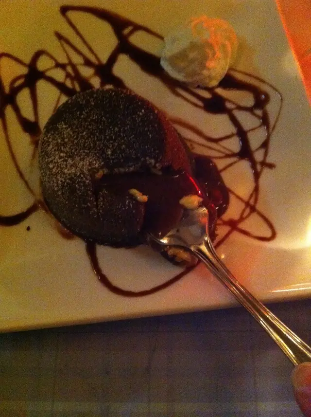 記憶中很喜歡此處出品的心太軟, 今天剛巧經過就重溫一吧下午茶時段幾抵食, 廿八元甜品有飲品 藍梅奶凍: 面頭佈滿餅干碎, 藍梅味有點人工的化, 質感也算滑溜, 天熱時吃點凍甜品比較易入口 心太軟: 細細件, 用叉細細力按下去時, 朱古力皮己下榻了大部份, 而朱古力醬緊隨著如水般流出來, 質感奇稀, 朱古力味非常淡薄, 絕對稱得上難食, 也是近幾年來吃到最差的出品 熱咖啡是用機沖出的, 一看奇色便知出事, 淡如無味 … 飲到O 晒咀 凍央: 是整餐最正常的出品伙記個個口黑面黑 , 我自己亦一路食一路咀咒 .... .... Blacklist