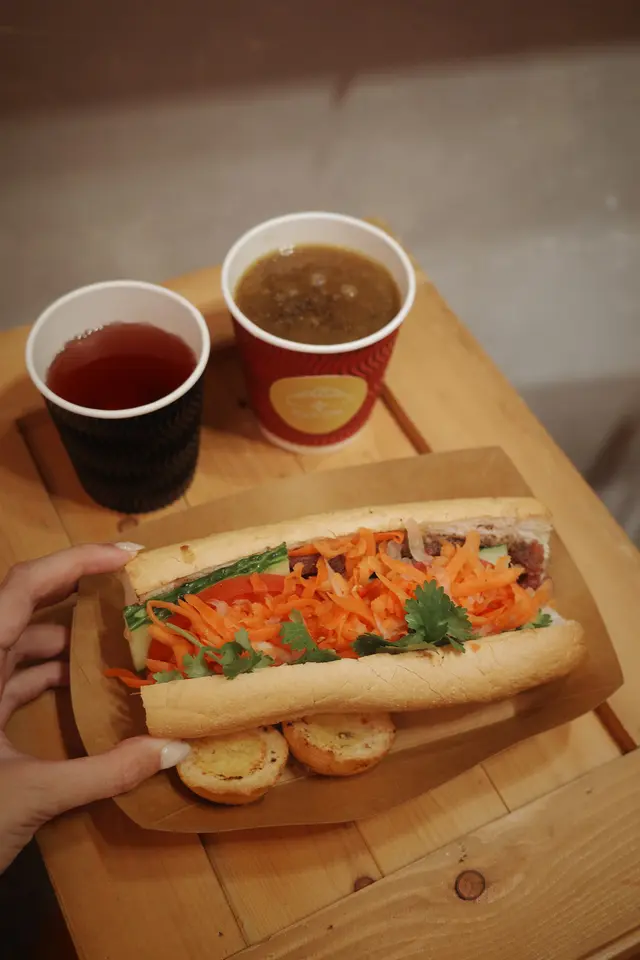 上環近西港城個頭最近見到有間越南法包小店,原來呢間小店「Bun Me 奔咪」係由石硤尾搬左黎上環,lunch一於試下越式法包法包會係焗爐再烘熱,入面有自家製肝醬、豬手粒、扎肉、醃製酸蘿蔔、青瓜、辣椒碎等等既配料,法包烘至脆身但又唔會話過硬,每一啖都有著豐富既味道香茅青檸茶香茅味好出,仲有青檸,最重要係杯香茅青檸茶唔甜,味道好清新店舖好細,基本上只有幾個座位,應該主要做外賣,法包同飲品都好岩我口味,老闆娘既笑容好親切,又會問下d食物岩唔岩食,令人好窩心,除左法包,呢度仲有牛角包、其他包同沙律等等既選擇,下次再黎可以試下其他☺️查看更多