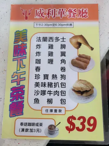 點解?因為呢間老字號夠哂響! 只做午市下午茶~夜晚係唔開既~唔係你想食就有得食呀!而日日中午都係迫爆~排隊搭枱都係家常便飯!而我最鍾意威利華既就係一杯熱奶茶!其他餐廳都係飲唔返果種!滑漏既感覺~茶同奶既比例岩岩好~而且唔可以落糖!會完全破壞左本身既味道!!我朋友話~下次試下檸茶得唔得先~我就覺得都絕對無問題!仲有西多士.牛通~呢d茶記必食既經典招牌野!
