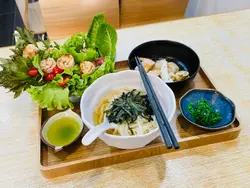 28.02.2023 星期五 晚娘之食堂今晚又去扮靚靚,扮靚前到屯門虹橋附近食好西,周圍食肆不少,好多都試過。在Open Rice搜尋了一番,突然見到這間小店,在一年前多新開張時幫襯過,當時連招牌都欠奉,印象中是不錯,可惜當時太新,OR榜上未有名,所以當時無留食評。今次下午五時多就到,未有其他人客。小店地方小小,基本上沒有甚麼裝修,連枱凳都好似隨便湊合,有幾款不同款式,真的好少見。🤭餐牌仍然是貼在牆上,有些座位可能看不清楚,總體上分丼飯類、烏冬類和小食,其中兩塊大黑板是特別解釋美食的特色之處,例如:「酸may may咖喱雞丼」- 咖喱以鮮甜香橙入饌,酸甜辛辣相輔相成;「滑蛋吉列豬扒丼」- 厚切西班牙黑毛豬扒口感一流,保證你食完返唔到轉頭;「溫泉蛋牛肉丼」-蘭王溫泉蛋加美國Prime牛肉,啖啖味覺享受!解釋得很有趣傳神,令人看見回心微笑,躍躍欲試,很是吸引。最吃驚是小店哥哥還認得我,說上次一年多前我也是吃大蝦沙律,可能比較少人食沙律,而且上次也是下午五時多,沒有其他食客,哥哥記性真的超強。海鮮鰹魚湯烏冬(少烏冬)$64包括有帆立貝、大蝦、魷魚,烏冬屬於我喜歡的幼身,加上鰹魚湯湯底,很美味。叫了少烏冬,據說比平時少了30%。黑板上寫明「丼飯全部都大大碗架,唔想做大嘥鬼,記得落單叫少飯」這樣做實在值得鼓勵和讚賞,不會浪費食物。車厘茄蝦沙律(醬汁另上)$48賣相如朶心型花般漂亮,蝦經過微煎,特別香口,沙律菜份量不少,夠新鮮,$48,實在很平宜。白桃烏龍$15熱烘烘的烏龍茶,一開初傳來陣陣白桃香氣,之後就只有茶味,很解喝。雖然沒有精緻的裝潢,但用心烹調美食,是比環境更重要,大家請來支持一下小店。查看更多