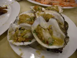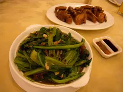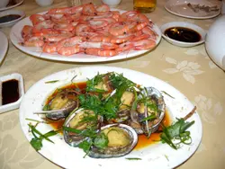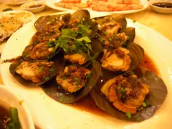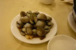 早幾年港人喜歡上深圳消費,貪其兌換價有著數,時移世易,一百港幣只兌得約八十人民幣,難怪有歌仔唱:「人民幣,係最威!」這天與太座上深圳辦點事,又走入向西路八卦完後,回程前想在樂園路的海鮮酒家吃晚飯,但看整條街都有海鮮檔在門前,不知去哪一間好?在附近的影音店老闆介紹我到這間「寶發」。在門外選了些海鮮後,便入酒家等開飯。這晚差不多座無虛席,點了壺普洱,索價十二元,用金色茶壺盛著,茶湯色澤如琥珀,甘香順滑,飲後令疲乏的我們感到舒暢。侍應介紹門外用巨罈烹燉的老火湯,唯不想喝得滿肚水,便不打算喝湯。先來的白灼海蝦,爽口彈牙,隻隻新鮮,二人吃半斤剛好。粉絲蒜蓉蒸小象拔蚌,不知是火候問題或是其他,肉韌,鮮味也欠奉,像吃橡皮膠,蒜茸和粉絲也不好吃。蒜蓉炒菜心,侍應送來時,碟邊貼了一貼紙,寫著:「五號師傅為您服務,吃得好請告訴您的朋友,吃得不滿意請您告訴我。」是信心的保証?菜心非常新鮮,炒得爽脆和夠火候,真想吃多一碟。果皮蒸泥孟,魚味不彰,肉質鞋,果皮味近乎零,下次試其他魚較好。賬單有齊兩種貨幣的價目,付賬用港幣或人仔,悉隨尊便。…查看更多