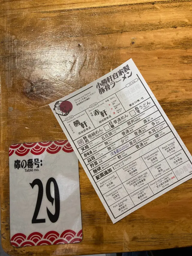 因為腸胃不太舒服,所以去附近的拉麵店吃拉麵🍜小勝軒是自己用紙下單的,可以自己揀,唔怕叫錯