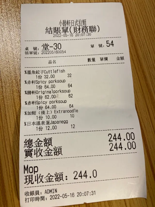 小勝軒拉麵 (南灣) 網址: https://s.openrice.com/QrbS1708800 地址: 澳門南灣澳門商業大馬路A11號南灣壹號1樓B號舖 電話: +853 6204 6106