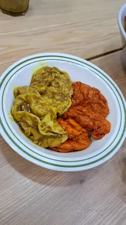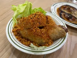 本來是配雞鎚,但因售罄關係,改為雞翼。雞翼炸至外皮香脆,雞肉就保持juicy。沾上蒜酥、辣粉,味道鹹中帶辣,辣感更是越食越勁,香口過癮