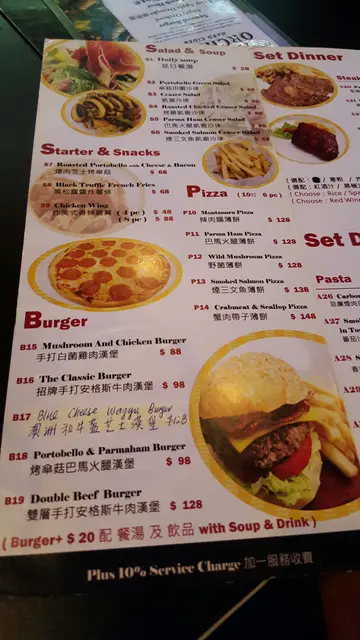 一向都非常喜歡開放式既食野環境,好似外國個啲露天咖啡甜品店禁,真係好正!今次呢間半開放式,雖然係元朗呢啲地方都無咩景可言架啦,不過呢度附近都係低密度既住宅,感覺都ok,算寧靜悠閒,唔會有太多匆忙既人行過!少位,不過禁岩一入去就有張台,keep住有人入,滿座!食物方面,個蘑菇湯,蘑菇味夠濃,岩哂蘑菇控!安格斯牛肉漢堡,件牛肉好嫩口,夠肉汁得黎唔會流到四圍係(個人好怕流哂出黎,好呢hea),呢個好似鎖住左啲肉汁禁,醬料都好夾,沙律菜新鮮!忌廉三文魚意粉~個汁有啲乾,無咩味,無特別,食到尾段個底啲意粉好似油浸禁,啲魚油沈哂底