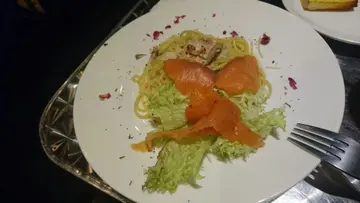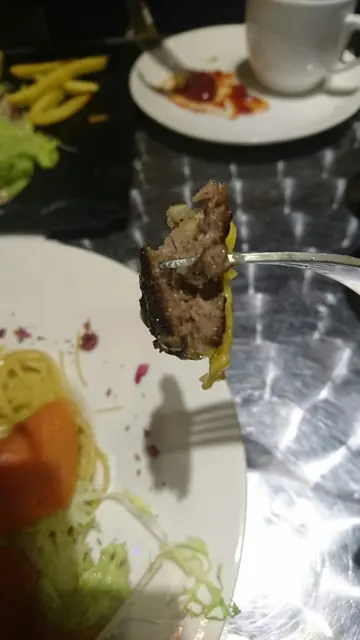 成口油,不過乾玫瑰花伴碟就靚靚有心思!同一個價錢,漢堡抵食好多,好食又有沙律同薯條,不過咩都試下麻,再去一定會揀哂漢堡!有加一服務費,不過連一向無要求既老公都話無服務,以為無加一!