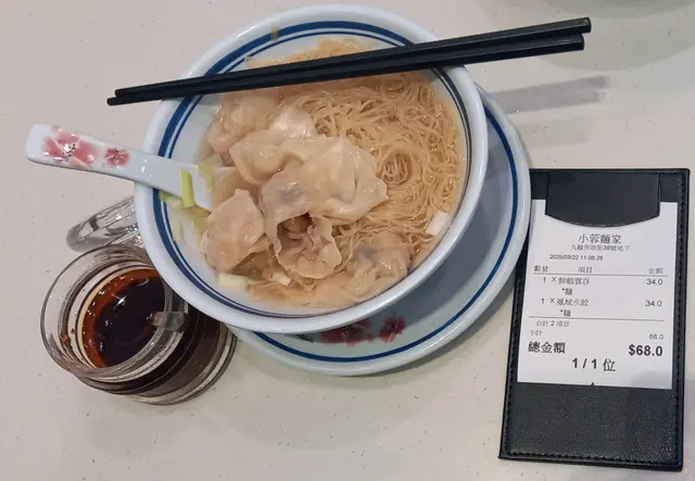 住左附近咁耐,成日話食,今次終於的起心肝去食,叫左3個麵1個小食。1.炸水餃如圖所示隻餃空洞到1個點,$10/1隻會唔會有點兒那個呢?!鳳城水餃喎!!!連基本既荀絲都冇…😔2.豬手撈粗豬手夠淋夠色但唔夠味,完全係食唔到南乳味,唔覺同南乳有關係,倒不如叫豉油豬手更為恰當,粗麵過淋,失去左粗麵應有口感!!!3.墨丸拼雲吞麵墨丸泡而不香,雲吞細細粒囉,鳳尾雲吞咁樣,喺超市買包東東雲吞皇好食過佢,麵底依然過淋!!!4.牛腩河的式形牛腩,一夾就碎,牛腩鞋口!!!以事論事,我都唔想係咁彈,而成餐唯一既優勝點係麵食價錢!!!其他真係諗唔到😅…查看更多
