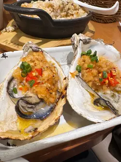 打風前夕和朋友到沙田吃飯。沙田友帶我去「小野人」。餐廳以台灣風味串燒為主打,每台都有一個爐放串燒,餐牌有多款創意料理,我們點了不少串燒呢。黑松露野菇烤飯與香蘑菇雞肉野炊飯「黑松露野菇烤飯」以濃郁的黑松露醬提香,搭配沙律醬,拌勻後以紫菜包裹同食,風味獨特。黑松露醬份量充足,每一口飯都充滿松露香氣,與紫菜結合後口感層次豐富,創意十足。「香蘑菇雞肉野炊飯」則採用古法烹飪,選用日本珍珠米,米飯軟硬適中,米香撲鼻。雞肉與香蘑菇的搭配濃郁而不膩,是店內的招牌必點之作,十分好味!海鮮串燒:蒜蓉烤生蠔與北海道扇貝「蒜蓉烤新鮮生蠔串」選用飽滿新鮮的生蠔,佐以指天椒、蒜蓉和香蔥,辛香惹味,更添層次。生蠔大隻且鮮味十足,蒜蓉的香氣非常吸引!「北海道蒜蓉粉絲大扇貝」則以鮮甜味美的扇貝,搭配蒜蓉和粉絲,十分惹味!肉類串燒:牛舌芯與雞腿肉串「燒牛舌芯串」外層微焦,內裡彈性十足,嚼勁豐富,是人氣必點之選。「燒雞腿肉串」皮脆肉嫩,塗上秘製照燒汁,味道惹味可口。此外,「燒牛肉串」外層香脆,內裡多汁,肉質粉嫩,油脂香濃,同樣值得一試。其他如台灣小香腸、燒雞翼和豚五花蔥肉捲,也各具特色,風味地道。糖燒牛奶方包「糖燒牛奶方包」表面微脆,內裡鬆軟,糖燒令方包香甜好味!飲品方面,「元氣森林水果茶」以百香果、青檸和檸檬調製,茶底清新,酸甜平衡,有效解膩,份量十足且價格相宜。「小野人菠蘿沙冰」果味鮮明,質感幼滑,吃了那麼多串燒後喝一口,非常清新。總體而言,「小野人」菜式選擇多樣,食材質素佳,而且價格合理。…查看更多