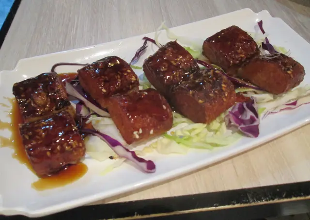 素是潮流@尚素 網址: https://s.openrice.com/QrbS0iQS700 地址: 觀塘駿業街56號中海日升中心1樓B舖 身邊越多肉食者,為健康為地球,都多了食素!我一直都支持架,雖不是全素者,但一個月總有4-5餐吃素$78 欖菜香菇肉碎四季豆,四季豆中加了素肉纖,肉素彷真度好高的口感,橄菜又鹹鹹香香,非常之開胃。辣子雞丁$88,有腰果木耳又爽口,同有素雞加上辣椒,是香水惹味素食都做得精細請究,絕對出得大場面,食得開心飽又低卡路里。食菜同好夠飽同架,而素肉用黃豆製同是富有蛋白質,平衡健康與環境。…查看更多
