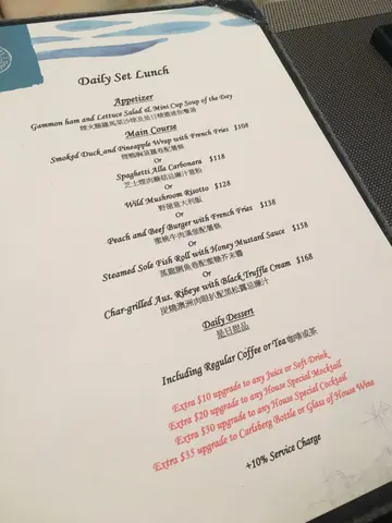 A - The restaurant:The colors used are dark tone with mirrors as highlights which give the restaurant an upper-class-to-be look. The table surface is a granite slab with a very bulky central leg supporting it, not too good for ladies with dress as it gets in the way and the only way to sit comfortably is open your legs wide (easy for men, not so for women in skirts).They have a ‘late night’ discount which cuts the price for drinks and food on the menu in half.B - For food: 1 – Crab Cake (HKD$108 – original price)The size was above average, but the taste was only average. Still couldn’t beat the one we ate in Café Deco (TST), but for half the original price, no one should really complain.2 – Seafood Bouillabaisse (HKD$228 – original price)It is simply a pot of seafood with soup, the seafood was not rotten, but the soup is too thin and not well seasoned. But again, for half the original price, you can’t expect much.3 – Angus Sirloin (10oz) (HKD$268 – original price)The meat was branded with thick grill marks which gives it a strong burnt taste in the mouth, my gf had to cut them away to taste the meat. However, the meat was fine ‘beneath’ the scorched surface. But again for half the….. you get the idea.C - For drinks: 1 – (Pint) Hoegaarden (HKD$84 – original price)Normal taste draft beer. Actually for $42, it’s actually a bargain for most places.2 – Sangria (S) (HKD$82 – original price)You get to choose whether to have red or white wine, personally I always preferred the white. It is also another $42 bargain.D - For dessert: Death by Chocolate (HKD$78 – original price)The chocolate ice cream was alright, not the ones you get from Dairy farm at least. Quite chocolaty but no one would die for it.E - ConclusionFor half the price, I would consider it a slightly above average meal. A fair choice if you live nearby. Lots of the tables were booked and filled, which proved it to have some degree of popularity.查看更多