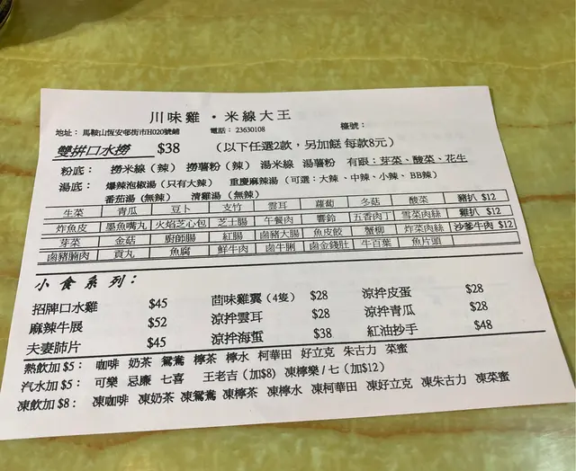 川味雞米線大王 (馬鞍山) 網址: https://s.openrice.com/QrbS0gKi900 地址: 香港馬鞍山恆錦街1號恆安商場地下恆安街市H20號舖 電話: +852 23630108