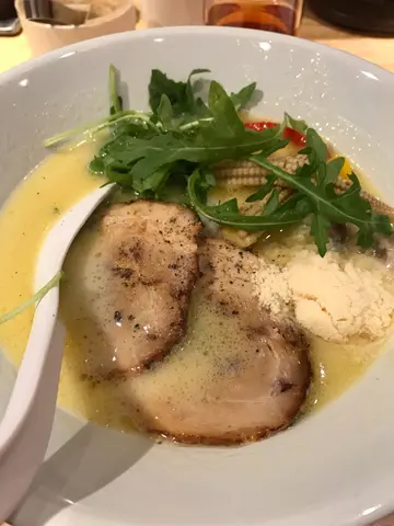 位於蘭桂坊,喺酒吧中突然之間有間好有日本feel嘅拉麵店:左近!店面細細,位置唔多,佢叫咗我哋去對面嘅酒吧到食,感覺好奇怪。店員好有禮貌,但始終係另一間鋪度食嘢,仲要係酒吧,好似有啲唔好意思。例如你想要水,究竟係問酒吧職員攞好呀,定係過返去間鋪頭問佢攞呢?柚子泡沫拉麵🍜好得意,好清新。第一啖食落去會食到好清新嘅柚子味,但食落之後其實冇乜柚子味。可能啲柚子味全部係啲泡沫到?如果有得坐喺鋪果邊啲位置,我下次都可能會再食。但都唔係大熱天時去食