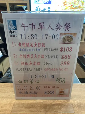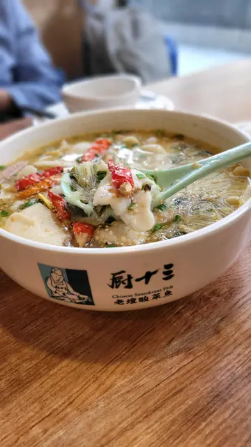 一踏入荃灣廚十三老壇酸菜魚,就飽覽到菜單上嘅多款夠哂正嘅川菜!我先點左碗「老壇酸菜魚」,口感爽滑嘅魚片同咸鮮嘅湯底真係太對味喇!啖啖魚肉🐟,輕輕咬落去已經融化喺口,仲可以加埋我鍾意嘅豆腐皮同埋午餐肉,食落去唔單止暖笠笠,更加豐富咗味道!又咬咗幾啖「麻辣砵砵雞」,食材多到爆格,由鵪鶉蛋到牛肚鮮甜脆口,同埋麻辣醬汁真係可以話是重口味嘅天堂🌶🥚!再加上滿滿嘅牛肚牛脷,啖啖肉食落去真係過癮得很!「雨露均沾」呢個小食名,睇落令人思考,原來係一種糍粑🍡。佢嘅煙韌口感,配上啱啱好嘅甜度,實在係開胃小吃好選擇!最後喺「泡椒鳳爪」上結尾。這道菜嘅鳳爪爽口得嚟又保持彈牙,泡椒所帶來既辣味同香味,係真係勁過癮!🐓喺這家店食飯,可以話係食到盡興又食到飽,每款菜色都滲透出荃灣風味,大推呀!👍👏🍽…查看更多