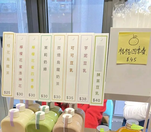 這間ig店,我見到朋友係story上分享,被佢嘅芋泥豆奶吸引住。可惜第一次去到pop-up店無貨,第二次先買到。我飲咗好幾款都好好飲喔😙*金鑽鳳梨水果茶(HK$35).3月時嘅季節限定口味.烏龍茶底好清香濃郁.有超多金鑽鳳梨粒粒,每一啖都飲到,酸酸甜甜好好味.飲完一支,再回購第二支😄桂花烏龍茶 (HK$25).這是無糖款.打開蓋已經聞到桂花香.茶飲好清澈,飲落烏龍茶味道出,好甘香芋泥豆奶 (HK$35).芋泥配豆奶,調味好飲,誰不喜歡😍.芋泥餡裝滿2/5支,大滿足!.芋泥呢,口感比較似芋頭粒多啲,我覺得煮得比較硬身,也切得比較大粒,用飲管飲好用力,如果可以細粒啲,泥狀一點可能會更好.而因為芋頭粒比較大粒和硬身,所以用飲管飲會飲到多多豆奶😅查看更多