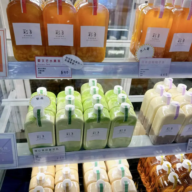 小清新飲料!位處於朗豪坊一個樓梯角落,擺放住一支支茶飲,風格好文青。方方地嘅膠樽,望到入邊嘅材料,既可愛又吸引。芋泥豆乳$35- 低糖豆乳感覺健康,材料充足,有滿滿嘅芋泥。呢度嘅芋泥唔幼滑,依然食到一大舊芋頭粒粒,真材實料。不過有時芋頭大粒到用紙飲管都通唔過,樽口又細,好困難先食到。愛文芒果茶$40- 我鍾意呢款水果茶多啲!有好多粒粒芒果食到,茶味同芒果非常夾,味道香甜又解渴,好味道!同芋頭比較起上嚟,芒果清新一啲,同埋容易啲同茶底結合。查看更多