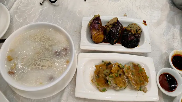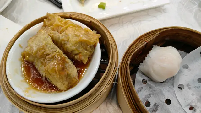 我今早去飲早茶,近近地走左去黃大仙現崇山商場的彩晶軒,環境闊落舒適。我點左點心:乾蒸牛肉賣$20,蠔王鮮竹卷$22 ,雞絲粉卷$18及皮蛋瘦肉粥$18。因為是9時前入座,所以茶水價是每位$6(特價)。乾蒸牛肉燒賣得3粒😅,我記得一般是4粒的,山竹牛肉球才是3粒。牛肉燒賣的牛肉不過不失,都可以接受。蠔王鮮竹卷食起來感覺鹹左些少,送粥食就冇問題!雞絲粉卷就幾好,粉皮幼滑,好味!皮蛋瘦肉粥值得一讚,大大碗,材料豐富,粥底好綿,好食👍👍!