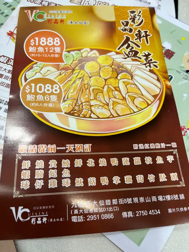 彩晶軒 (黃大仙) 網址: https://s.openrice.com/QrbS0Jie100 地址: 香港黃大仙睦鄰街8號現崇山商場2樓8號舖 電話: +852 29510866