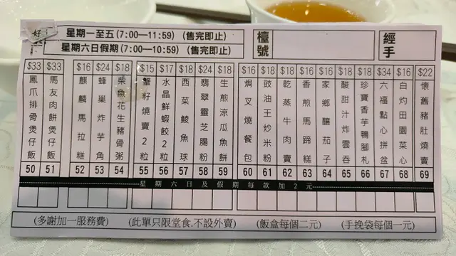 今日是母親節, 沒有打算飲茶, 因為怕難搵位。 老公早點去搵位, 很高興不用等, 立即有位。 我最喜歡吃這裏的雷沙煎堆仔, 但點心紙沒有這個點心。 於是,我問一位女侍應,她回答我: 點心紙沒有, 即是沒有啦。過了一回, 我見到傳菜啲阿姐推出擂沙煎堆仔, 於是我再問女侍應 ,她竟然說可能係我眼花; 而另一位著西裝嘅男侍應/ 部長也同樣說沒有雷沙煎堆, 應該 係我睇錯。但過了一回,我又再見到傳菜啲阿姐出 擂沙煎堆仔 ,於是,我問傳菜啲阿姐,佢話: 係有㗎,點心紙冇show,要問侍應落order。於是,我又再搵著西裝嗰啲侍應/部長。 嗰位侍應/部長勁冇禮貌, 十分晦氣回答: 係有㗎, 要自己用QR code落點心㗎嘛! 我最終用QR code order 了我最想食嘅 擂沙煎堆仔, 但對這間酒樓嘅服務, 感到極之失望! 因為疫情, 我很久沒有去飲茶 ,亦不知道原來這間酒樓落order可以用QR code。 原本開開心心去慶祝母親節,換來的卻是一肚氣!