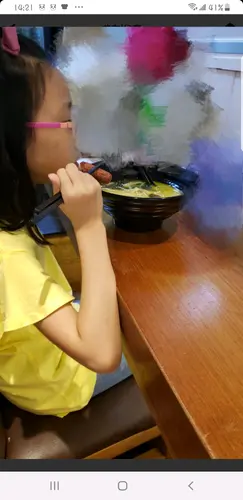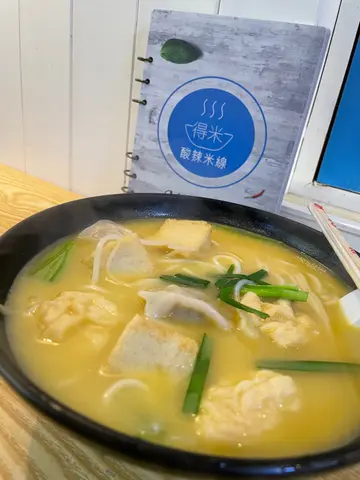 其實已經幾年冇入長洲喇!所以今日就同阿囡入長洲行下食吓~問亞囡午餐想食啲咩!佢竟然答我想食米線🍜,喺長洲要特登搵間米線鋪真係俾左個難題我!行左兩條街終於見到有間米線鋪啦,阿女話個霓虹燈招牌好靚!仲話要影張相添!入到去睇左個餐牌阿女就揀左酸湯湯底!問左個店員話係南瓜做湯底再加咗啲酸菜!所以個湯係黃金色!有輕微少少辣架~ 我就揀咗個麻辣湯底,加左肥牛,海帶,木耳絲!亞女大讚個酸湯湯底好好味~