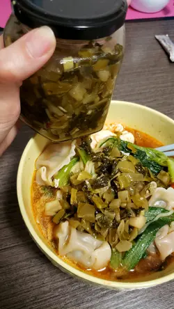 我仲買左店員推介自家製辣菜脯同埋酸菜買返屋企配麵食一流呀