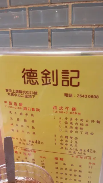 德釗記茶餐廳 (上環) 網址: https://s.openrice.com/QrbS0NaC000 地址: 香港上環蘇杭街78號太興中心二座地下 電話: +852 25430608