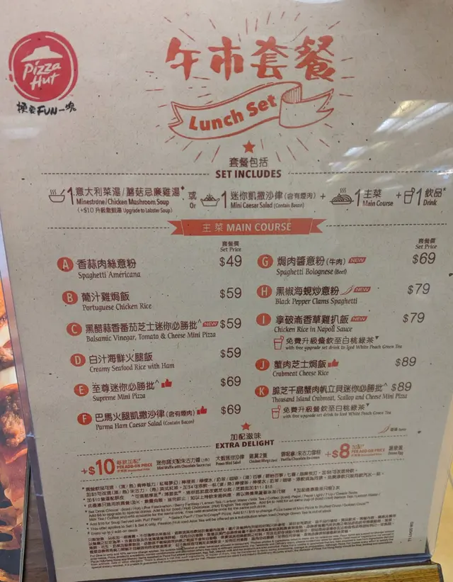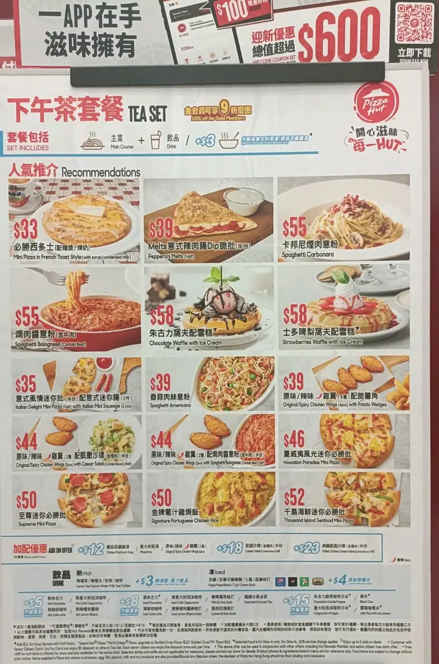 必勝客 (宇晴匯) (荔枝角) 網址: https://s.openrice.com/QrbS0Ada000 地址: 香港荔枝角深盛路9號宇晴匯2樓89-90號舖 電話: +852 22649119