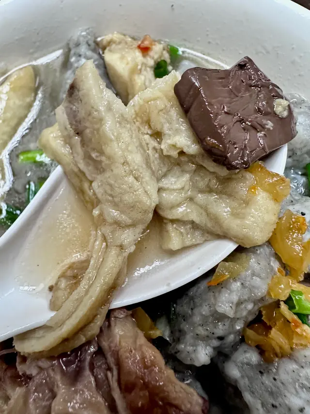 這間座落在果欄附近的小店好多街坊熟客幫襯,新客第一次到幸運不用等位,店家爽手抹乾淨檯面就熱情招呼入座小妹在這類老店最鍾意留意客人點餐,早就門口探頭探腦時就八卦問等外賣的客人點了什麼,被告知湯品一流,其中要數禮拜四先有的豬肺湯最為聞名。今日是禮拜一,落場幫手的年輕人主動告知今日有魚翅邊煲雞湯。沒有名物豬肺湯也沒有所謂,我相信其他湯也不會差。除湯之外,還點了潤腸糯米飯和一份牛腩湯麵(麵底是油渣麵)不一會兒功夫後生仔就端上三碗,賣相看上去簡單但很有食慾。第一次食油渣麵,比較軟身,食落有油香味。要大讚蘿蔔牛腩,蘿蔔清甜沒有渣,牛腩本身肉質就不錯,調味比較克制不會太重口味,很好地中和了麵底的油膩。糯米飯用的潤腸沒有太多肥肉,油潤之餘仍有咬口。滲透豉油和臘味油的糯米飯十分香口惹味,還有花生和蔥花點綴,一點也不敷衍。魚翅邊煲雞湯卻食到大大塊豬骨,難怪湯這麼清甜,飲完就理解客人會為這一碗捨得放料的湯一再回訪幫襯。這間小店,招牌寫著油渣麵,其實內有乾坤。有粥有麵有飯有湯,食小菜又得,想食海鮮又有,好似回到家同阿媽講我今日想食什麼,阿媽就會從廚房變出來一樣,是家的味道。掌勺「阿媽」從廚房出來經過,問我牛腩好唔好食,我含著一口牛腩麵感激地說好好味。她笑笑口說證明我功夫還在!又提到湯,她說魚翅邊最近價高,幸好她上年買了20斤,我在內心為「阿媽」的明智拍手叫好。食飯之間見客人流轉,熟客和店家的默契一覽無餘。食物串連起人與人之間的關係,值得欣賞得不只是食物本身。出門埋單120蚊,同店家道謝道別,是要感謝他們將食物做得美味、將小店經營得這般有人情味,讓我們食客離開時肚飽心滿足。
