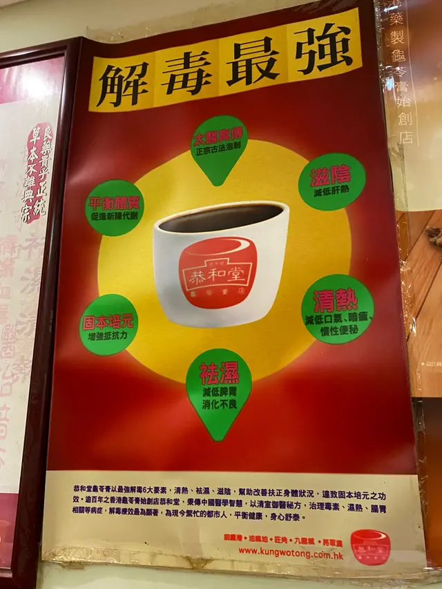 香港夏季長,氣候濕熱,容易上火、生暗瘡、中暑毒等,中藥的食療法在香港大為流行。龜苓膏源於宮廷秘方,流傳於民間,盛行於香港。香港人從小就是吃龜苓膏長大的,一有上火、生暗瘡的症狀,想到的就是吃龜苓膏去清熱解毒。除了清熱解毒的功效,還有滋陰潤燥、美顏護膚等效果。所以我們習慣了吃龜苓膏、喝涼茶,解決小問題不用去看中醫。說到做龜苓膏的專家,始創於1904年的恭和堂是香港人耳熟能詳的老牌子,用料考究值得信賴。她還有川貝枇杷膏治咳嗽、無花果靈芝膏潤肺養生、加強免疫力、安神益氣等;涼茶系列有龜苓茶、廿四味、五花茶等,全部都是應對香港的氣候問題引起的亞健康問題。現推出的新品:"益生元龜苓蜜蜜飲"把龜苓膏做成小小包的,方便帶出街、隨時隨地都可以飲用。…查看更多