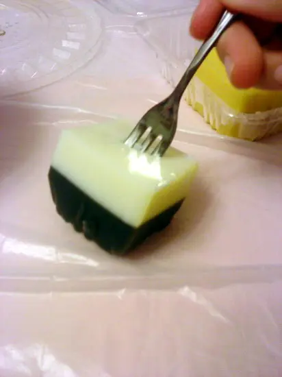芝麻椰奶味 ,黑白配的顏色~用叉篤開可變成兩小件獨立味道的糕點~