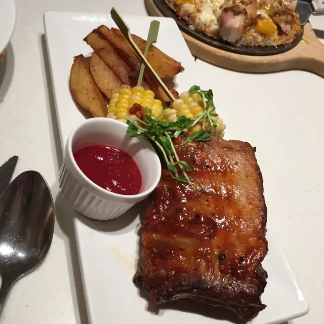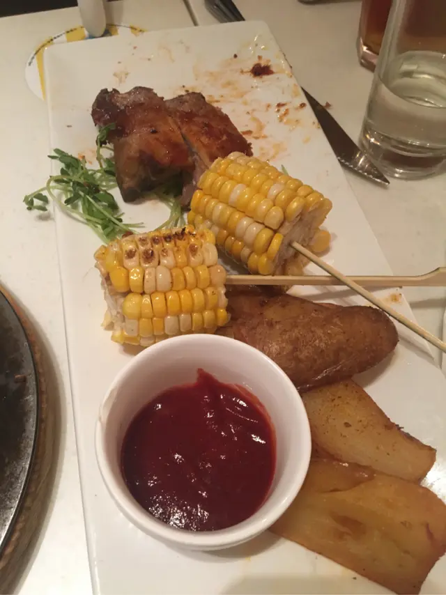 燒烤醬汁bb豬肋排配牛油粟米辣薯角