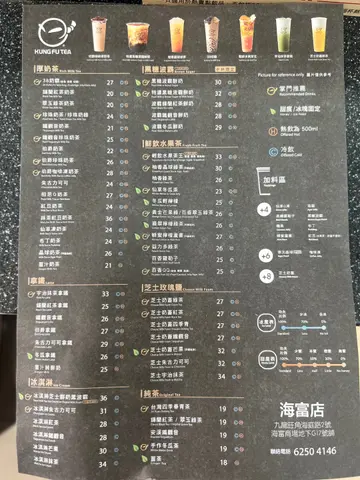 手作功夫茶 (海富商場) (旺角) 網址: https://s.openrice.com/QrbS0ksSB00 地址: 香港旺角海庭道2號海富商場地下17號舖 電話: +852 62504146