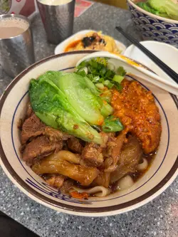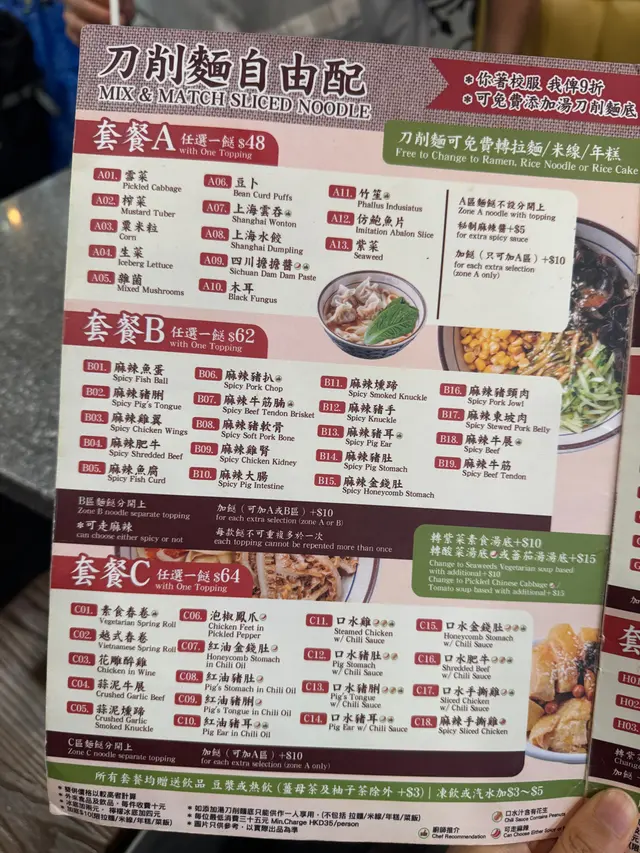 依日係銅鑼灣渣甸街找到一間食刀削麵嘅拾味正宗刀削麵館,從未食過嘅刀削麵,真的好期待。入到店內,裝修簡潔,地方雖然唔係好大,但有種正宗刀削麵嘅感覺。睇吓餐牌先,刀削麵可以自由配搭,多款餸菜、麵食、上海菜飯、滋味小食及飲品等,選擇都幾多。麻辣牛筋腩牛展刀削麵 $72店舖主打刀削麵,當然點嚟試吓啦!刀削麵即叫即製,見到師傅即場削麵,麵條軟滑,煙韌有彈性,充滿麵粉香味,湯底清清地帶點蔬菜甜味。選擇咗兩餸有牛筋腩及牛展(+$10),好黏口既牛筋,充滿膠質,牛腩炆至軟淋,有少少咬口,兩款醬汁非常入味,下次一定要再來。麻辣東坡肉豬軟骨刀削麵 $72另一碗刀削麵配麻辣東坡肉及豬軟骨(+10),湯底清甜,刀削麵煙韌有彈性,揀選少辣既東坡肉,肉質入口即化,帶少少麻辣,猪軟骨口感軟綿,配麵好夾,越食越滋味。薑母茶 (+$8)熱熱既薑母茶,帶些辛辣,薑味唔會過濃,與甜度都啱啱好。Zero (+$8)食麻辣配凍飲最夾,冰冰凍凍,口感好爽。…查看更多