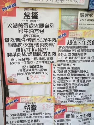 5月4日, 老實講, 住喺呢頭乜野大大小小嘅茶記都已經試過晒, 摩登呢間野本身都應該可免則免, 但係竟然都仲可以頂得住咁耐, 我地都真係唔知因由, 今日經過呀菲又俾佢地嘅漢堡包吸引咗, 結果...::: 沙嗲牛麵 + 餐蛋 + 茶走 ::: $26沙牛麵好以進步咗, 沙牛有醬而個湯底又多咗d色, 唔再係白晒晒. 沙牛今次有番多少少沙爹味, 牛肉一定係乸到淋晒一咬就一pat pat, 好在仲有番d良心加番條菜, 麵呢都係唔入味嘅.今次太陽蛋煎得算唔錯, 個黃都ok, 可惜方包一成不變咁好薄又淡...茶走個煉奶重手咗, 比較甜. 算係不過不失.::: 手打牛肉漢堡包 + 凍奶茶 ::: $22 + $2呢個自家製手打牛肉漢堡包都算係摩登招牌, 除咗下午茶就連早餐都有得供應, 所以一早起身就啪個漢堡飽做早餐喺呢度都係正常事~ 老實講呢個漢堡包就絕對唔係話咩矜貴野, 材料都無乜特別, 但勝在塊牛肉真係頗新鮮, 食得出手打嘅彈牙juicy口感!凍奶茶就一般啦, 茶味濃但帶澀而且奶味不足. 不過呢度嘅凍奶茶一向都係麻麻...同樣今次食咪又係咁樣水準, 除咗加咗價其他野冇變過, 仲企得喺度, 百思不得其解.…查看更多