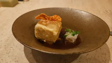 上環的Mora摩由米芝蓮二星餐廳TATE Dining Room總廚兼創辦人Chef Vicky創立,現由Chef Fai掌舵。這間獲得米芝蓮綠星殊榮的餐廳位於充滿文化氣息的摩羅上街,僅設28個座位。相比Vicky在TATE展現的精緻法式中菜風格,Mora摩則專注於大豆製品的創新演繹,以「豆品之味」為主軸,採用中法融合的烹調手法。餐廳以大豆作為烹調主題實屬大膽嘗試,這並非素食餐廳,而是將豆腐、豆漿等豆製品與肉類巧妙結合。開場的炸豆腐以酥香外皮包裹極度順滑的內裡,形成令人驚豔的質感對比,完美展示了大豆的多樣性與獨特風味。Mora摩的主菜充分展現主廚對大豆的深度理解,其中麻辣龍蝦採用麻婆豆腐的做法,讓龍蝦的鮮味與微辣香麻完美融合,口感層次豐富。另一道招牌黃油雞豆腐卷以豆腐作內餡,吸收了黃油雞的濃郁油香,配合醬汁釀酒汁的甘香,為平淡的豆腐注入新生命。其他特色菜式包括三黃雞肉捲配麻婆豆腐醬、香煎帶子配豆乳發酵豆腐醬等,每道菜都以大豆為核心,創意變化味道與口感。雖然整體處理得當,風味和諧,但以單一食材為主軸的菜式略顯重複,這或許是專注於特定食材概念餐廳的必然挑戰,卻也展現了團隊對大豆無限可能性的執著探索。Mora in Sheung Wan, founded by Michelin two-star TATE’s Vicky Lau and helmed by Chef Fai Choi, earned a Michelin Green Star for its innovative soy-focused cuisine. Located on historic Cat Street with 28 seats, this non-vegetarian restaurant creatively combines tofu and soy products with meat. Signature dishes include spicy lobster with mapo tofu style and butter chicken tofu rolls, showcasing soy’s versatility through Chinese-French fusion techniques.…查看更多