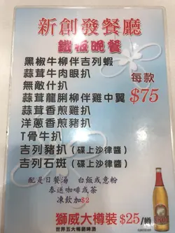 晚上同朋友一行三人走左去新創發餐廳鋸扒,因為呢間餐廳性價比十分高,自己就叫左雜扒餐,朋友就叫左黑椒牛柳伴吉列蝦 ; 餐湯除咗有白湯紅湯仲有中湯添。雜扒餐有香腸、火腿、煙肉、豬扒、牛扒配白飯。味道唔錯幾好,以今時今日嘅生活指數黎講,咁豐富既雜扒餐都只係七十幾蚊真係無得輸,而自己亦都試左朋友既黑椒牛柳,牛柳多汁之剩重肉質嫩滑唔'鞋'口,都值得一試。…查看更多