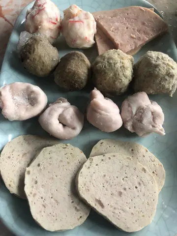 丸類其實與平日差不多,盡放一起,感覺挺多:芝心丸、麻辣湯包丸、沙拉魚籽丸、墨魚丸、八爪魚丸、貢丸、黑椒牛丸。以