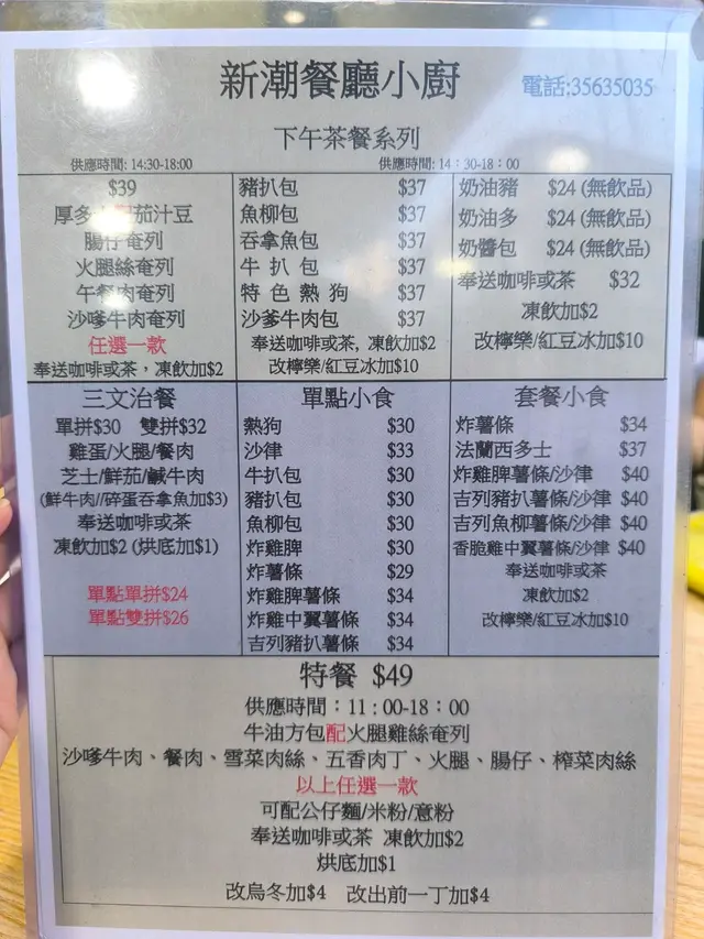 新潮餐廳小廚 (土瓜灣) 網址: https://s.openrice.com/QrbS0bB4A00 地址: 香港土瓜灣美善同道46號美善大廈地下B號舖 電話: +852 35635035