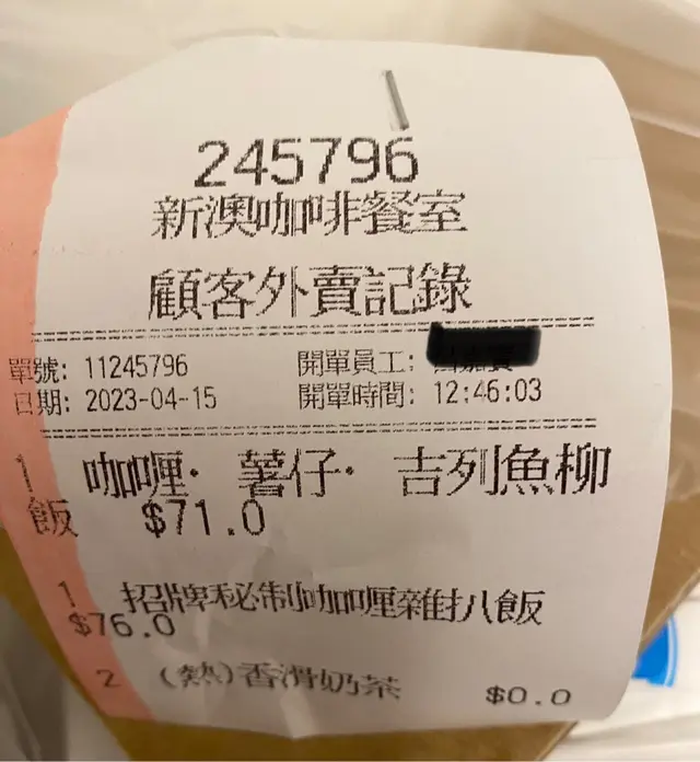 新澳咖啡餐室 (九龍灣工業中心) (九龍灣) 網址: https://s.openrice.com/QrbS0tsW800 地址: 香港九龍灣宏開道15號九龍灣工業中心地下3號舖 電話: +852 36430999