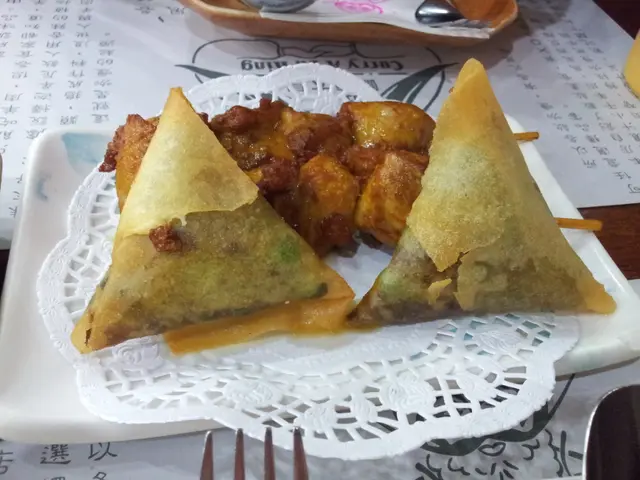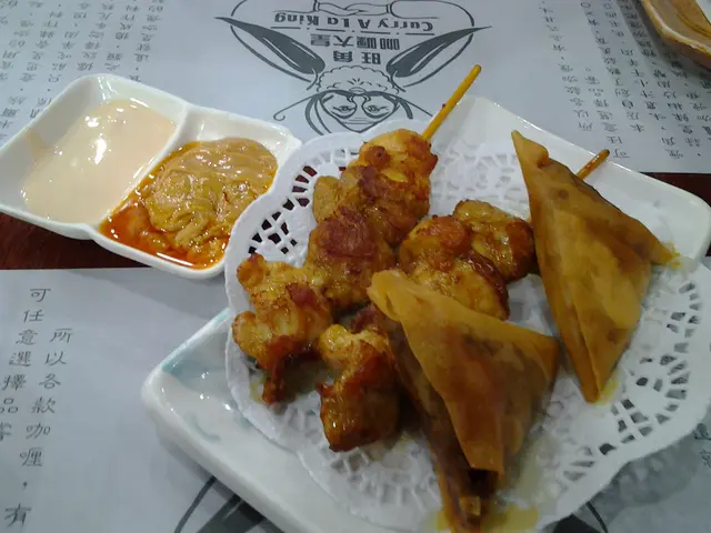 !!我同肥妹仔叫左個A餐:::頭盤有咖喱角同燒肉串!!個咖喱角好香好惹味, 涵料應該自己炒!!不過上碟時好多油呢, (有D唔開胃!!)至於條肉串質地唔韌, 燒到啱啱好!!