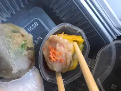 盒點心仲係鬼死咁熱嘅,個辣椒油十分特別,陪嗰個潮州粉果真係好鬼正
