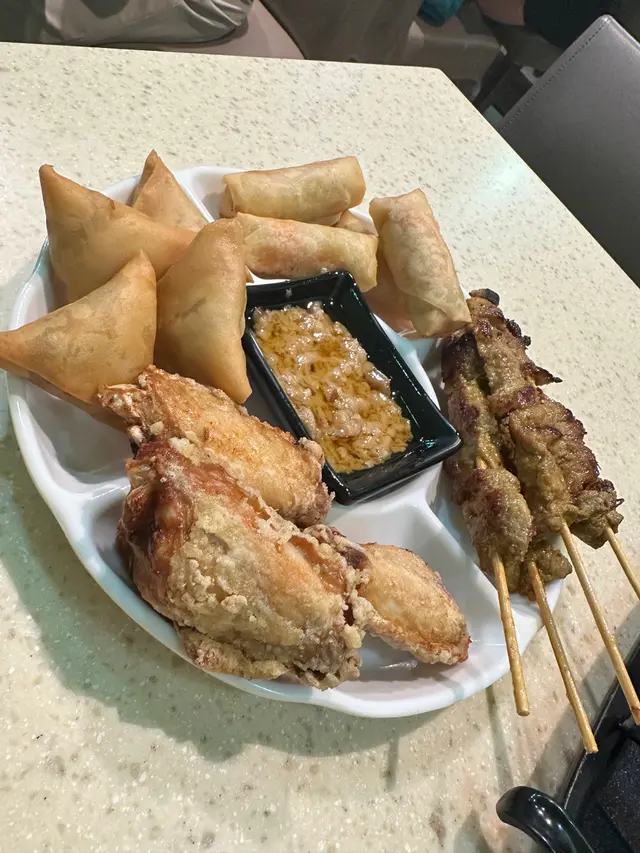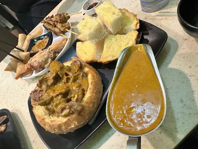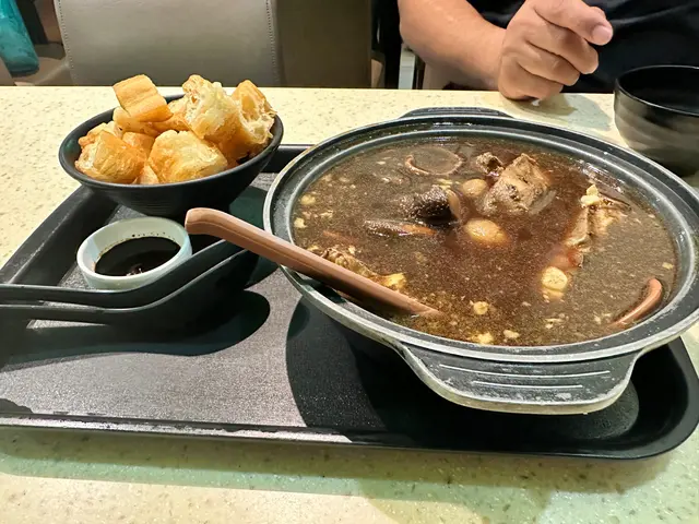 話說兩條友喺呢條街盪咗半個鐘,揀嚟揀去,最後入去試吓☺️肉骨茶加配油炸鬼,大大煲,可惜唔係餐牌講嘅明爐肉骨茶,放低10分鐘已經凍晒,要同時間競賽,快快手飲晒啲湯先得,材料都多,味道夠濃,但冇藥材味嘅😟小食拼盤$150嚟講,好似有啲貴,雞翼同春卷冇乜特別,串燒豬肉燶燶哋有焦香味,最好味反而係咖喱角,個辣味喺個口度徘徊咗好耐,好味道😋最後個咖喱牛腩農夫包,真心推介,個包外脆內軟,啲牛腩有少少筋,軟淋淋唔柴唔痴牙,個咖喱汁夠濃郁,點包一流,好味道😋飲品嗌咗鹹檸碧,冇乜特別,青檸梳打就係溝出嚟嗰啲,冇青檸的,只能少甜,冇得走甜🥲查看更多