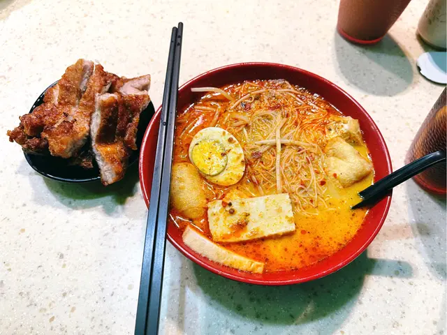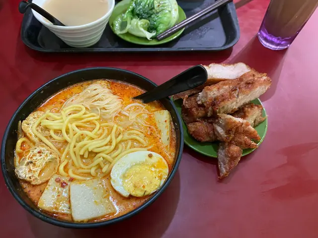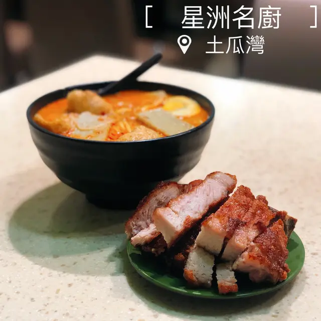 🇭🇰星洲名廚·我地本身諗住食隔離個間天園餃子架 但係我地太遲去到 佢已經截左單啦 所以我地就入左黎呢間😎😎·招牌厚切豬扒娘惹喇沙$58 l 海南雞套餐$67佢個厚切豬扒真係超級厚切 而且佢係一D都唔韌 面頭仲脆脆地 食落口感同味道都好好🐷不過可能因為我地太夜 所以佢個豬扒係暖既姐 唔算話超熱辣辣 要點湯食先熱D😈😈之後佢個湯地都唔錯既 豆卜好索湯 係個魚片粉左少少 之後佢個掺掺比例都唔錯既 不過如果再多D油麵口感應該仲正🤤佢個海南雞就一般般啦 佢個調味比較淡 食落似白切雞多D 好在佢D雞肉都嫩既 不過都係個厚切豬扒出色D🤣🤣··📍土瓜灣北帝街35號查看更多