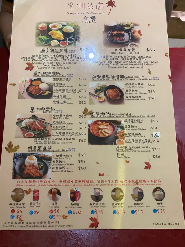 今日去開土瓜灣一帶,肚子有d餓入左一間星州名廚食星加坡嘢。跟住我同我老公就叫咗一個招牌厚切豬扒㗎喇沙$56,同埋海南雞飯$65仲加咗$8要個凍拉茶同埋加$15嘅紅豆冰。個招牌厚切豬扒喇沙呢好有驚喜,個豬扒又厚啦又唔鞋口又好香香茅味,個喇沙又好濃郁的蝦味同埋椰汁味,真心唔錯。而個海南雞飯呢就比較失色啲啦,海南雞呢係冇幫你脫骨嘅,啲骨呢仲多過肉,同埋隻雞唔係好夠味。可以唔洗試!到最後就係加左$8的凍拉茶,冇特別唔洗加。而紅豆冰係需要加$15的,更加不需要普通過普通。整體來說星州名廚的喇沙可以一試。查看更多