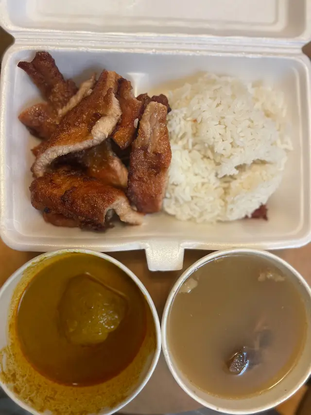 這間叫星洲名廚,看名就知吃星馬泰的食物,而且有名廚這個名,加上午餐定價高於其他食店,那就令我大大提高對這間餐廳的食物質素。入到來就叫一客海南雞飯。食物很快就到,海南雞飯有齊三款調味料。雞的份量都幾多,不過是沒有去骨的。所以就吃得沒有啖啖肉的爽。雞肉很厚,但不知是否與雞的部位有關,雞肉不滑,很鞋,亦沒有味,所以那那調味醬就顯得很重要。跟海南雞飯的油飯不錯,飯粒分明,有與料頭一起煮的味道。這個餐還有菜和湯,都是滿足的一餐,就是主角海南雞的水準比下去。見其他人點炸豬排,份量好似很多和美味,都可以一試,但主打的海南雞飯就算了。神級無味食評師-阿偉查看更多