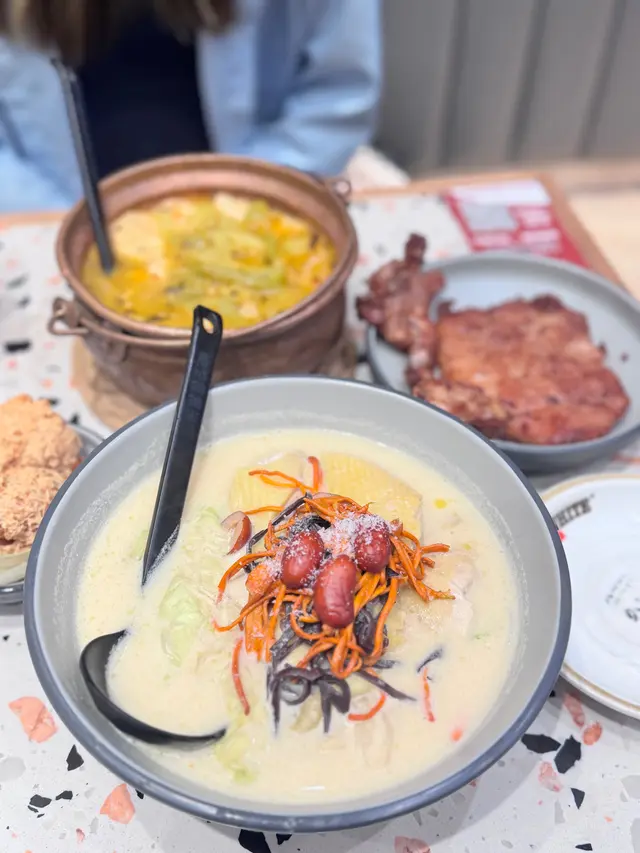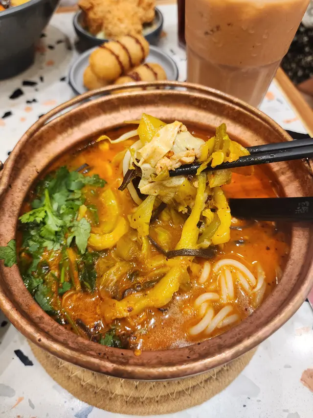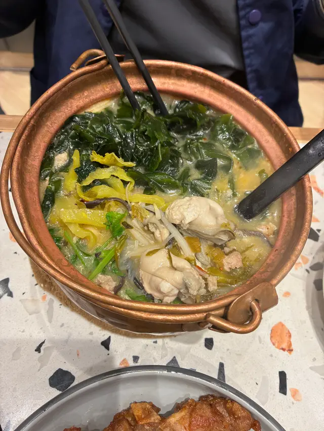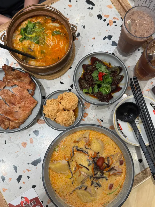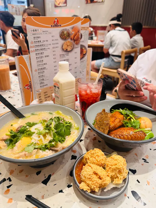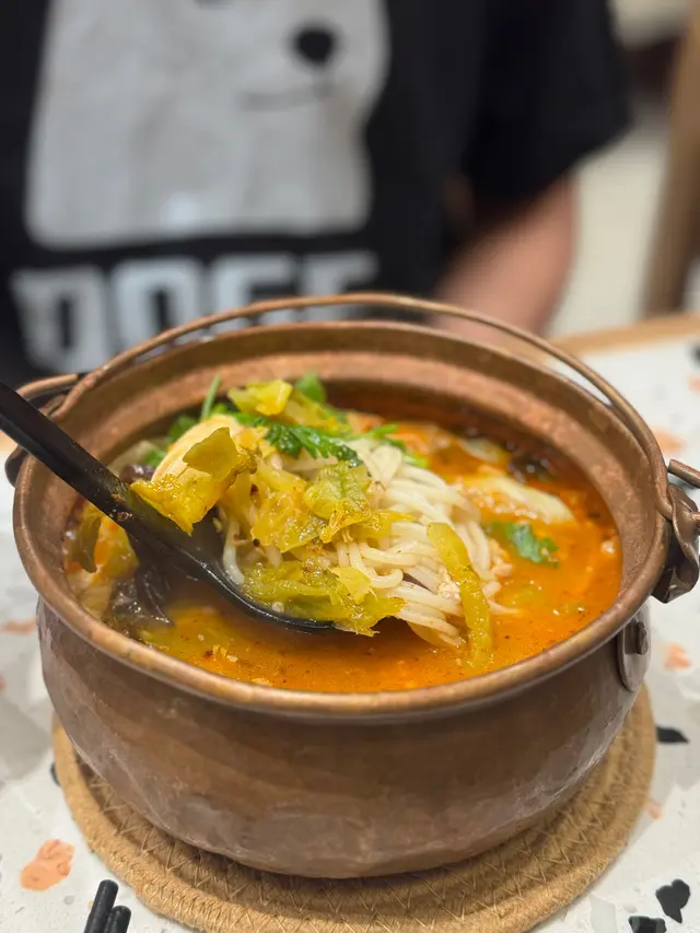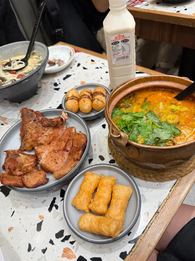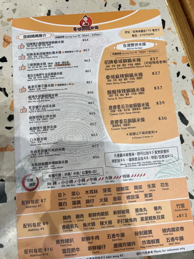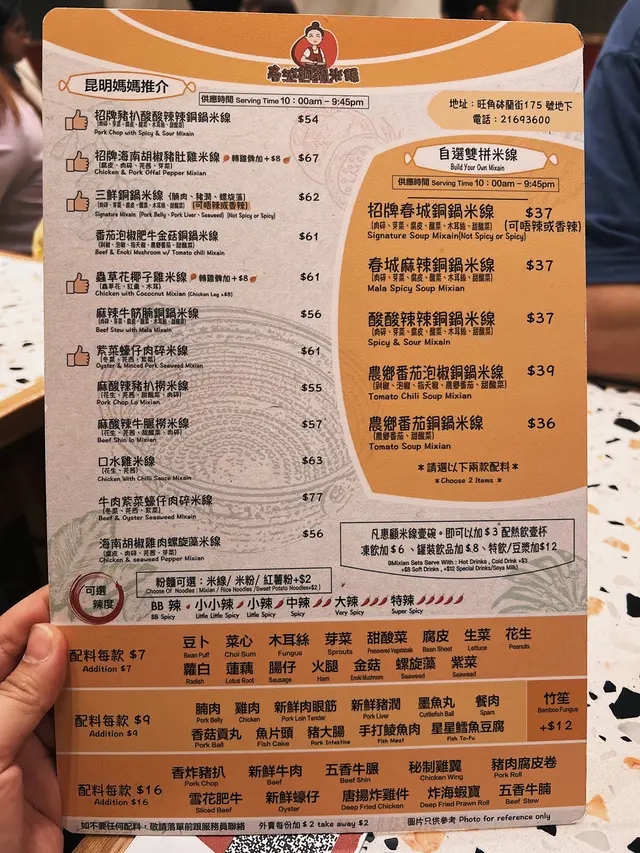 餐廳:春城銅鍋米線地點:旺角砵蘭街菜式:雲南米線餐牌:醒胃酸菜飯、即叫即滾湯飯、昆明媽媽推介、自選雙拼米線、小食推介、飲品。招牌春城銅鍋米線 $37成個銅鍋熱辣辣上枱。米線滑溜,配有肉碎,芽菜,腐皮,酸菜,木耳絲同甜酸菜,材料豐富有口感。湯底可選辣度,我叫左唔辣,都好夠味。農鄉番茄銅鍋米線 $36農鄉番茄銅鍋米線就有好香甜番茄味,仲食到好多甜酸菜,芫荽同生菜。都可以叫辣呀。自選左以下材料:新鮮牛肉 $16新鮮牛肉份量唔少,好嫩。五香牛展 $16五香牛展有好幾塊,唔錯。新鮮蠔仔 $16新鮮蠔仔有好多隻,超滑唔腥。五香牛腩 $16五香牛腩有好幾件,算淋而且入味。叫左兩款小食。炸脆脆蝦膠豆卜 $25呢個價錢係三粒,可以叫五粒。炸脆脆蝦膠豆卜炸得外皮香脆而入面蝦膠好彈牙又鮮味,配甜酸醬非常開胃,墊有生菜解膩。爆漿紅糖糍粑 $20呢個價錢都係三粒,可以叫五粒。爆漿紅糖糍粑熱辣辣上枱,皮好薄脆,而入面果然有爆漿紅糖,味道甜甜地唔會太甜,口感外脆內軟糯,係一道唔錯既甜品。凍檸檬可樂 加$12凍檸檬七喜 加$12罐裝汽水另配大大杯冰,仲有四片檸檬,解渴夠凍。今餐食到飽飽,銅鍋米線果然唔錯,小食都幾好,主食價錢好平。餐廳裝修光猛,平日午市滿座。…查看更多